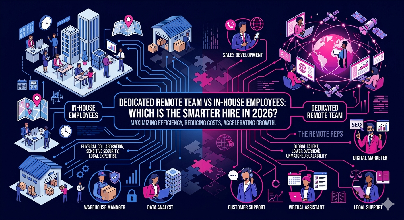 The debate around a dedicated remote team vs in-house employees has never been more relevant. As businesses reassess their hiring strategies in 2026, the choice between building a local workforce and partnering with a dedicated remote team can define your operational efficiency, cost structure, and ability to scale. Whether you run a startup or an established enterprise, understanding the real-world trade-offs is essential before you commit.