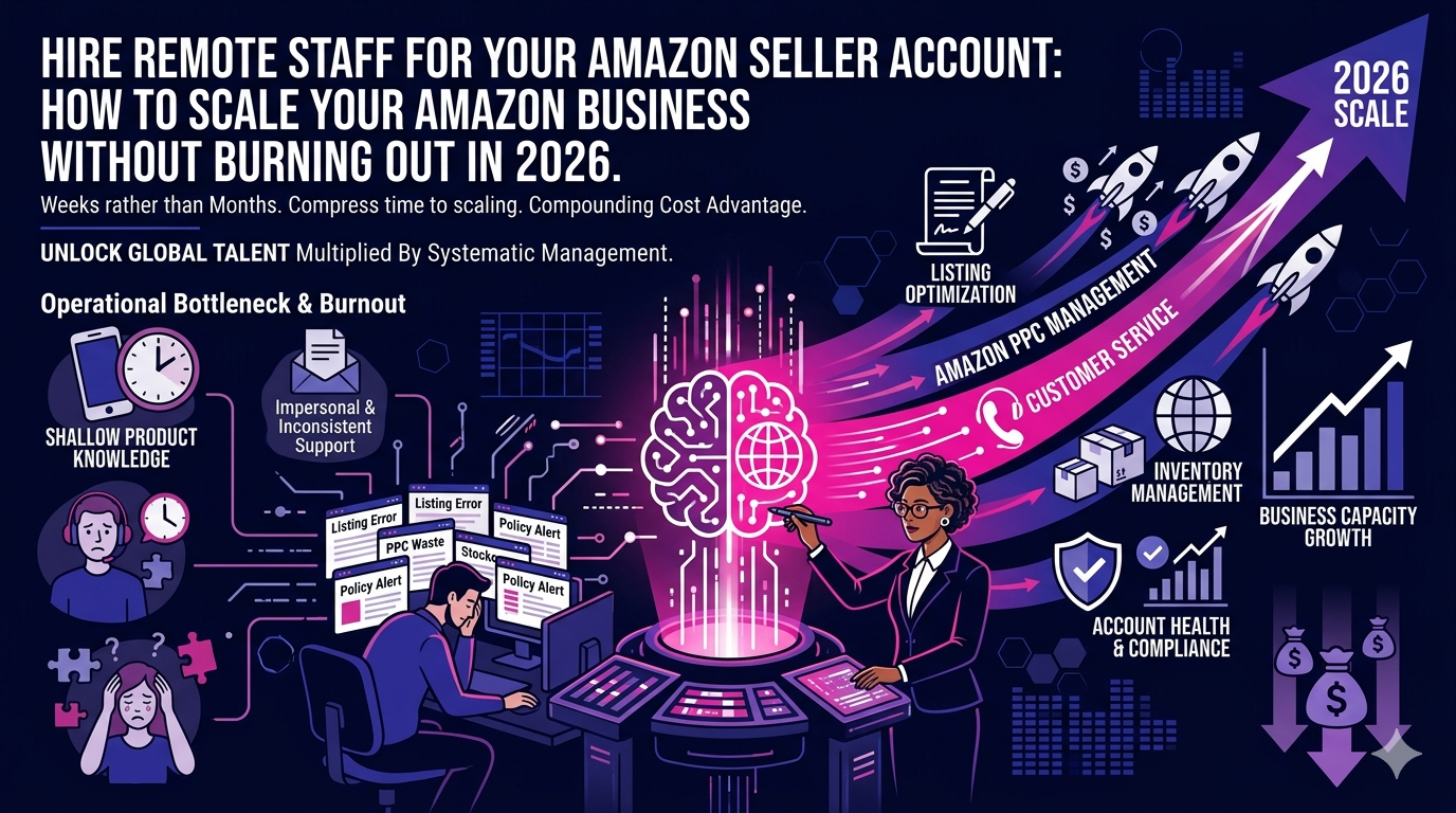 Running a successful Amazon seller account in 2026 is not a part-time endeavor. Between managing product listings, monitoring advertising campaigns, handling customer inquiries, responding to policy alerts, managing inventory forecasts, and staying ahead of algorithm and policy changes, the operational demands of a growing Amazon business can quickly exceed what a single founder or small team can sustain without dedicated support. The most effective and cost-efficient solution is to hire dedicated remote staff for Amazon seller account management who take ownership of the day-to-day account operations that are consuming your time, so you can focus on the high-value strategic decisions that actually grow your business.