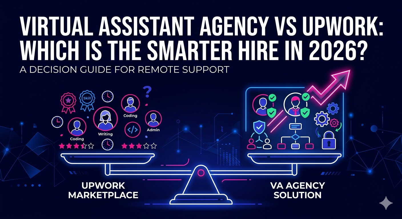 If you have been searching for remote support, you have almost certainly landed on the same crossroads: virtual assistant agency vs Upwork. Both promise access to skilled remote professionals, but the experience of hiring, managing, and retaining that talent looks very different depending on which route you take. In 2026, with more businesses than ever relying on remote support for day-to-day operations, making the right choice from the start saves significant time, money, and frustration.